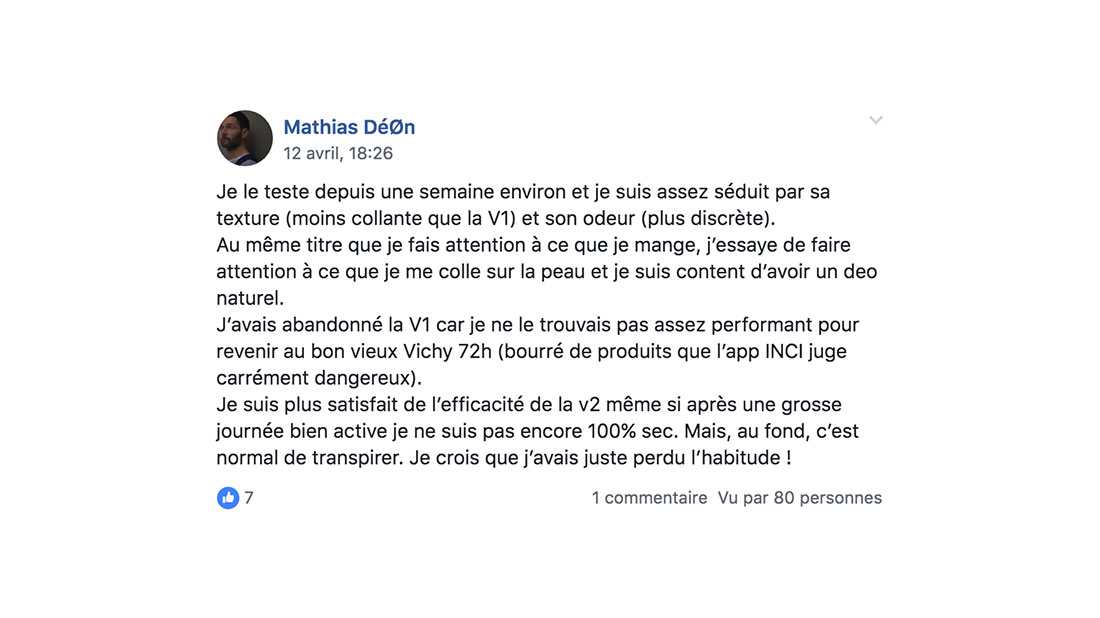 L'idée ? Parler de la deuxième version de notre déodorant naturel, qui va sortir bientôt.